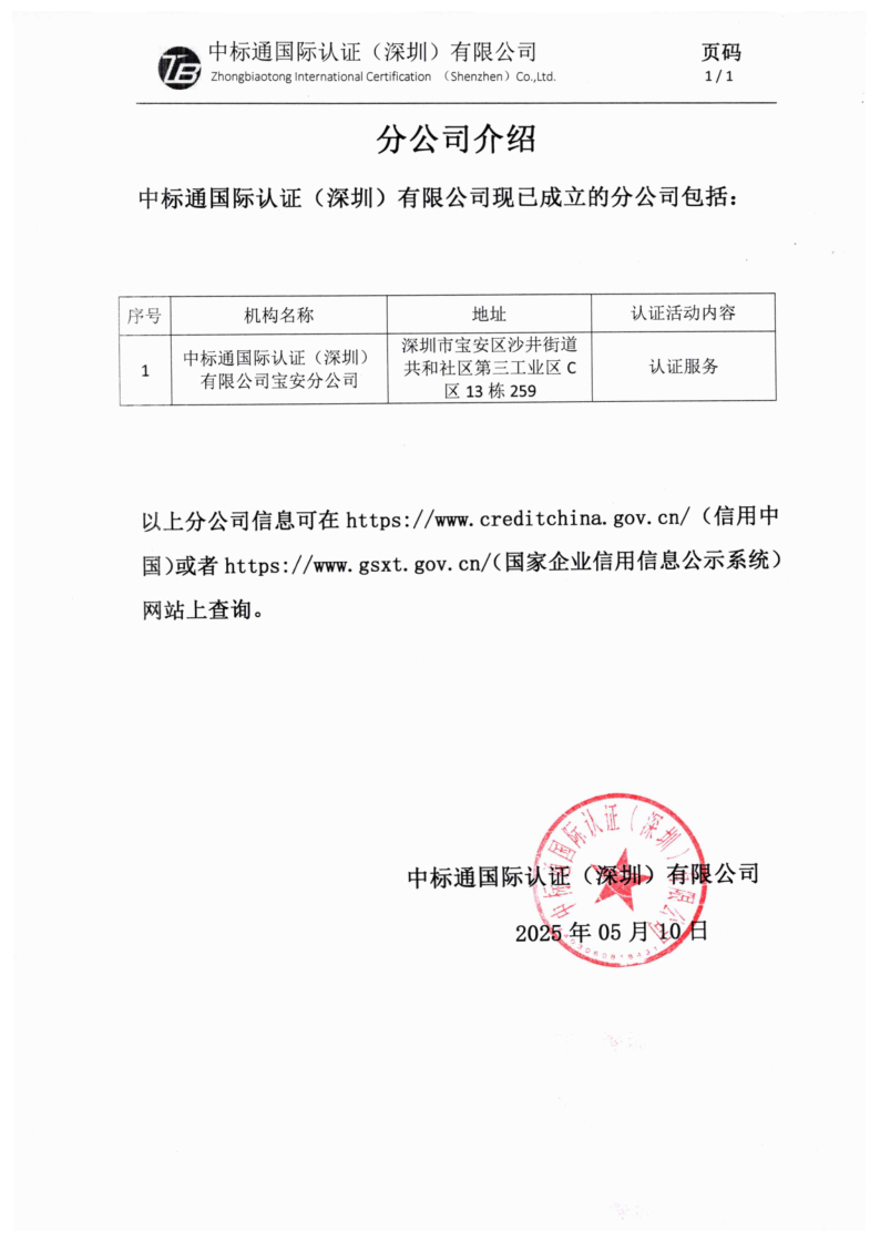 中標通國際認證(深圳)有限公司認證實施規則備案公開明細