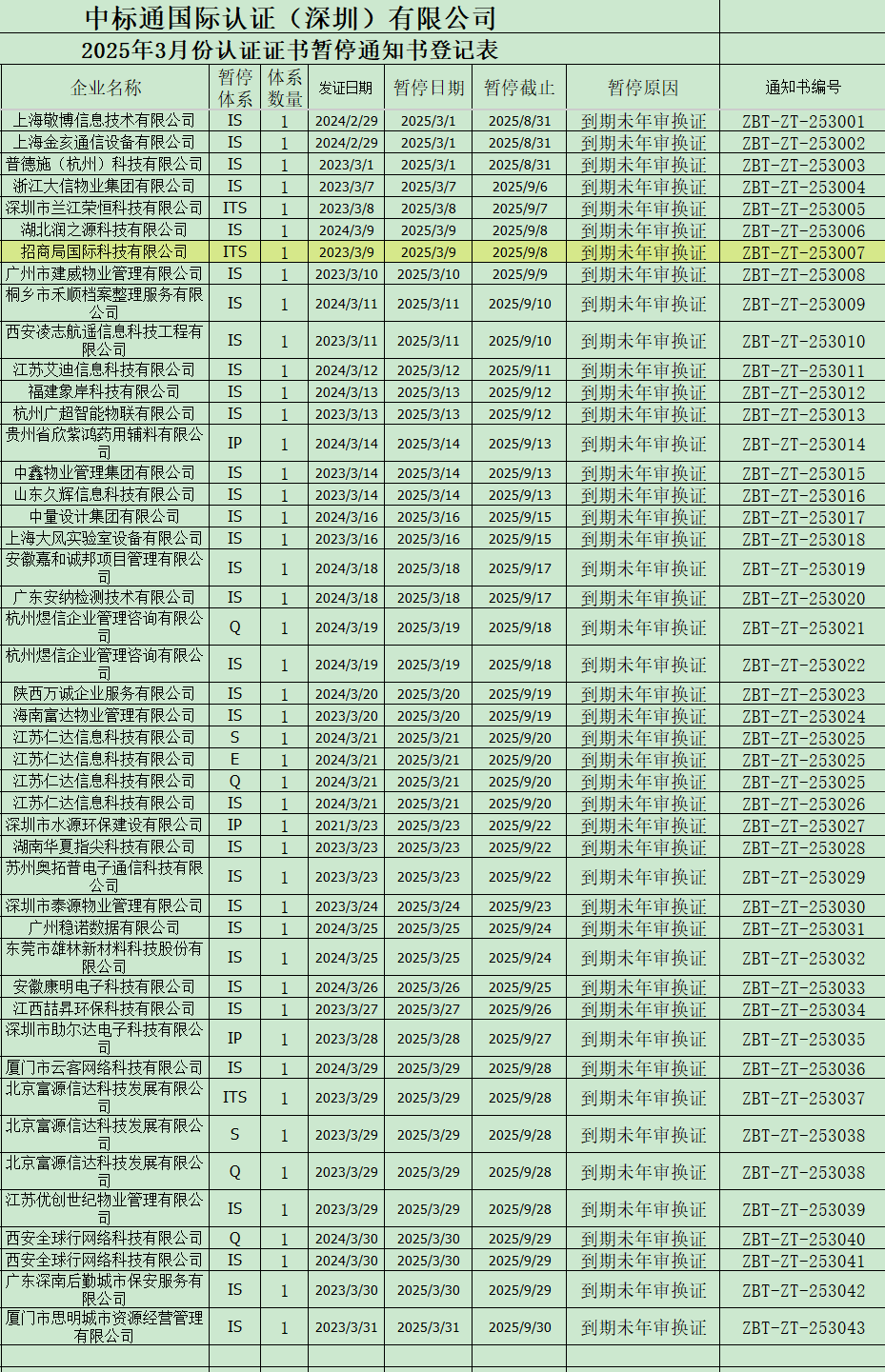 2025年3月份認(rèn)證證書(shū)暫停通知書(shū)名單